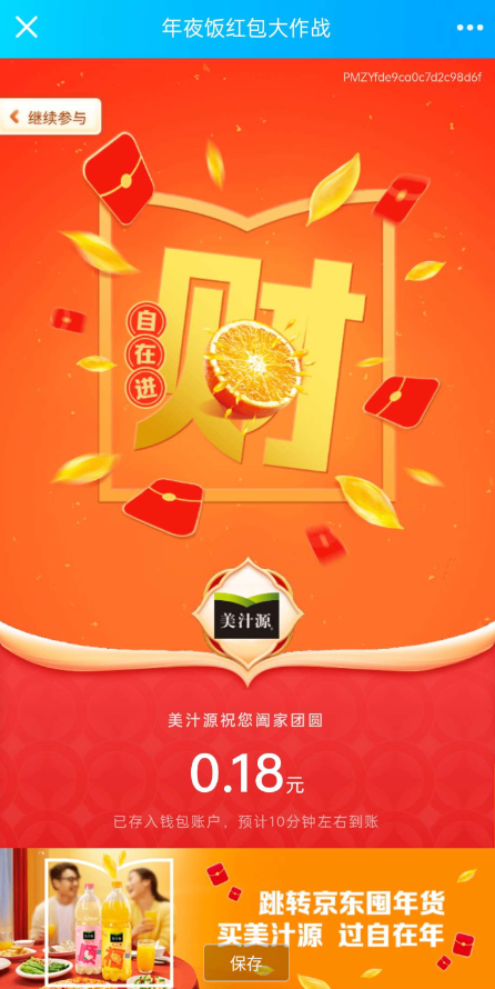 【活动介绍】美汁源午夜饭红包大作战抽现金红包