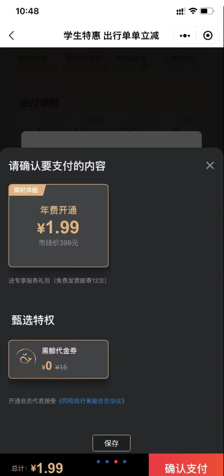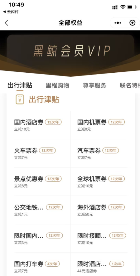 也显示黑鲸年卡图标,平常定下酒店,机票等有优惠券能不少钱,一句话,我可以不用,但是我不能没有