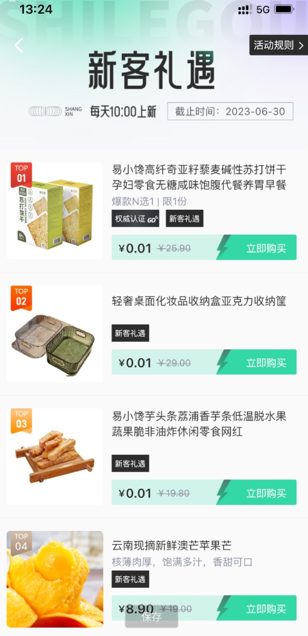 【参与方式】狮乐购app→自营→滚图→新客一分购