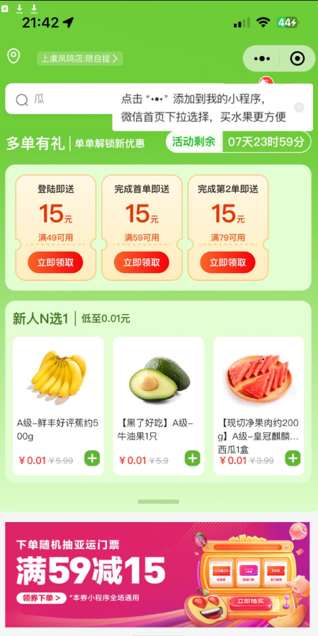 新人注册0.01买水果 “鲜丰水果优选”小程序