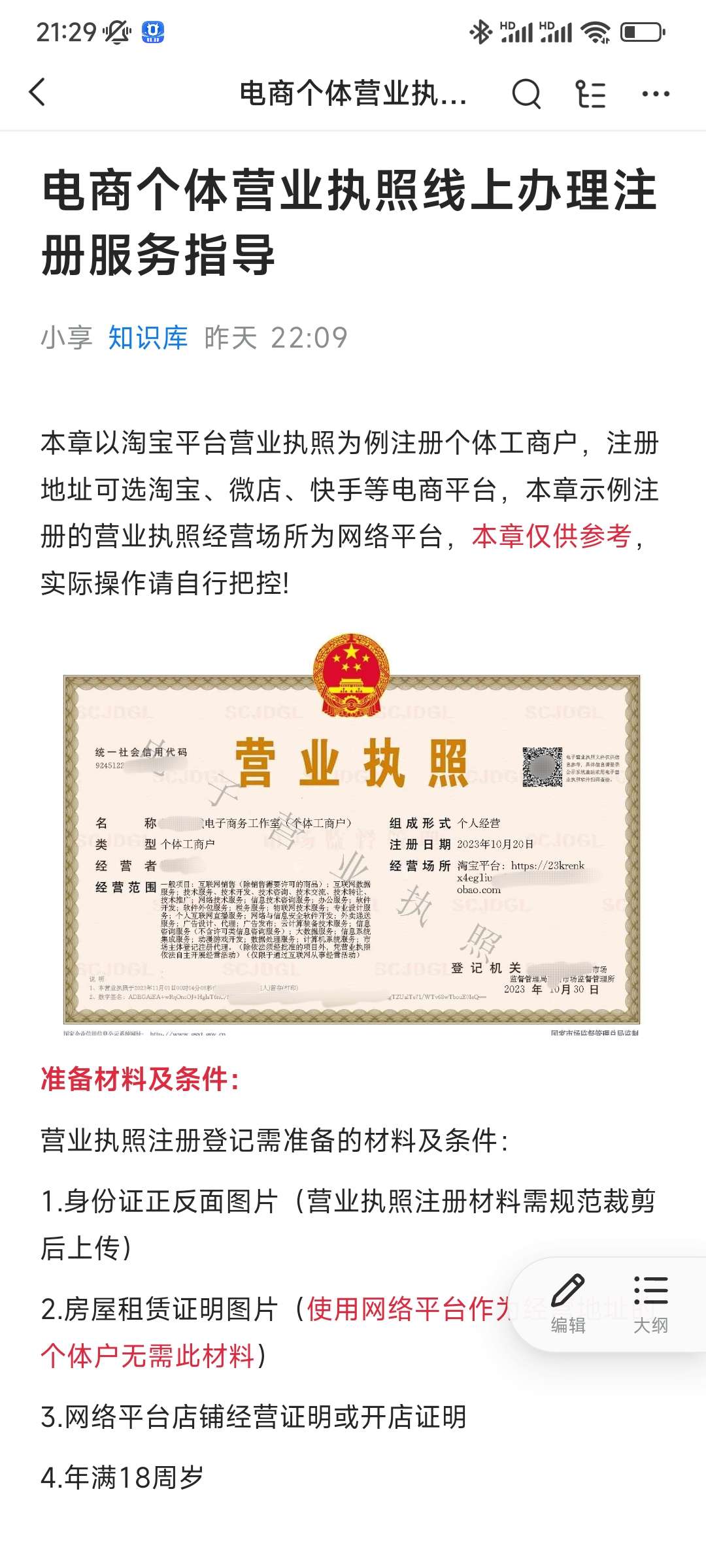 语雀地址:【电商个体营业执照线上办理注册服务指导】