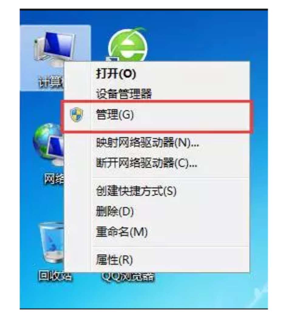 1.右键点击计算机,选择管理选项。
