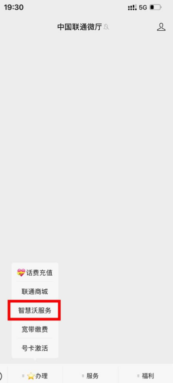 联通用户:公众号“中国联通微厅”点击菜单栏“智慧沃服务”下拉到最底下开启。