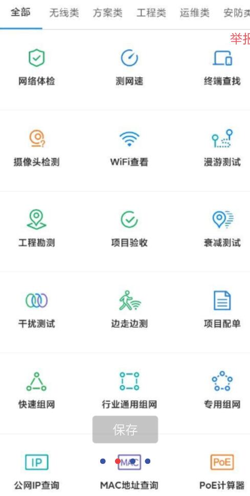 1、无线类小工具:网络体检、测速、终端查找、摄像头检测、漫游、衰减、干扰、验收、Wi-Fi查看;
