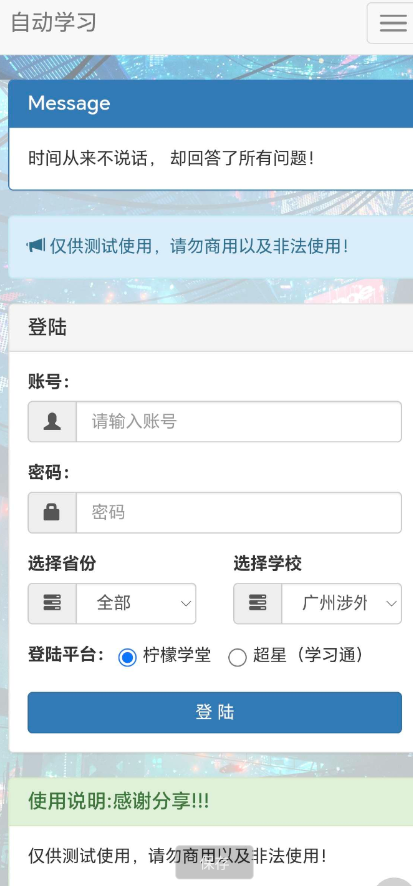 自助网课助手,使用简单,完全免费,支持学习通,柠檬文才。