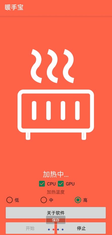 【资源介绍】:暖手宝APP是一款专为冬季设计的手机应用软件,旨在通过让手机CPU高负荷运行来产生热量,从而实现暖手功能。该应用适用于安卓系统,用户可以通过调节滑块来控制发热程度,并在设置界面选择CPU或GPU加热,以及设定发热截止电量。